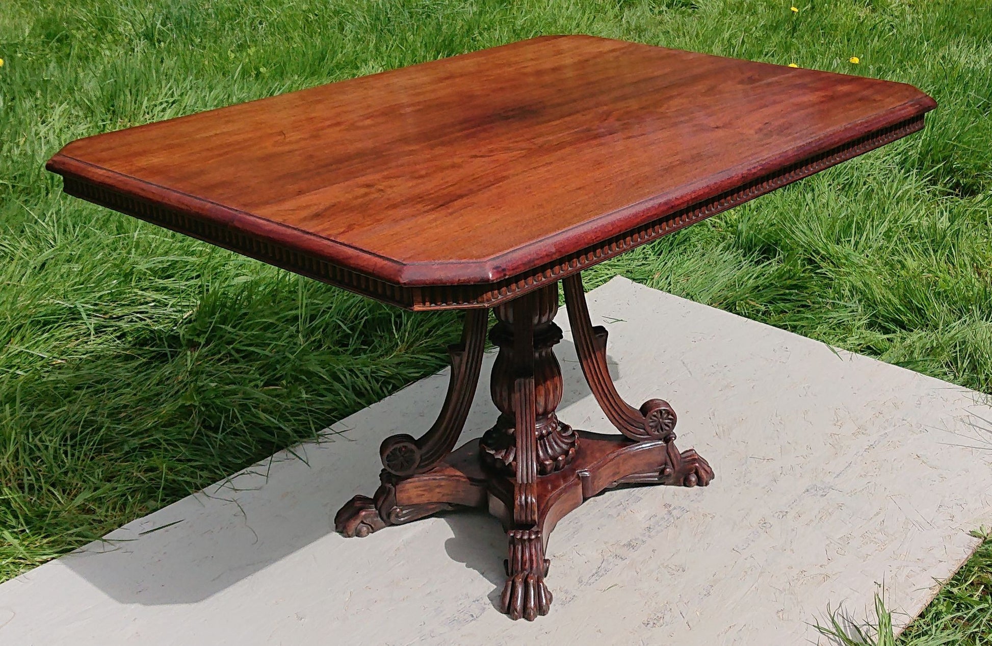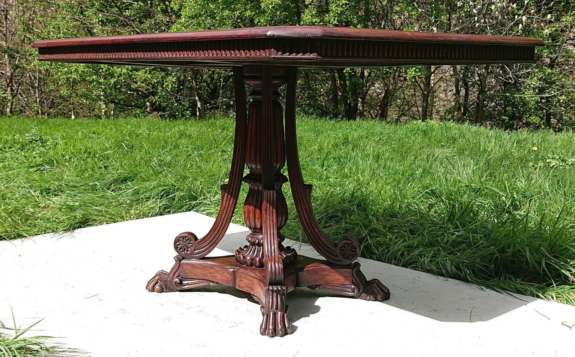 Exceptional carved detail and great proportions combine to make this table a real joy to behold. Made in India in the 19th century using designs from England. Provenance Wakelin and Lindfield.