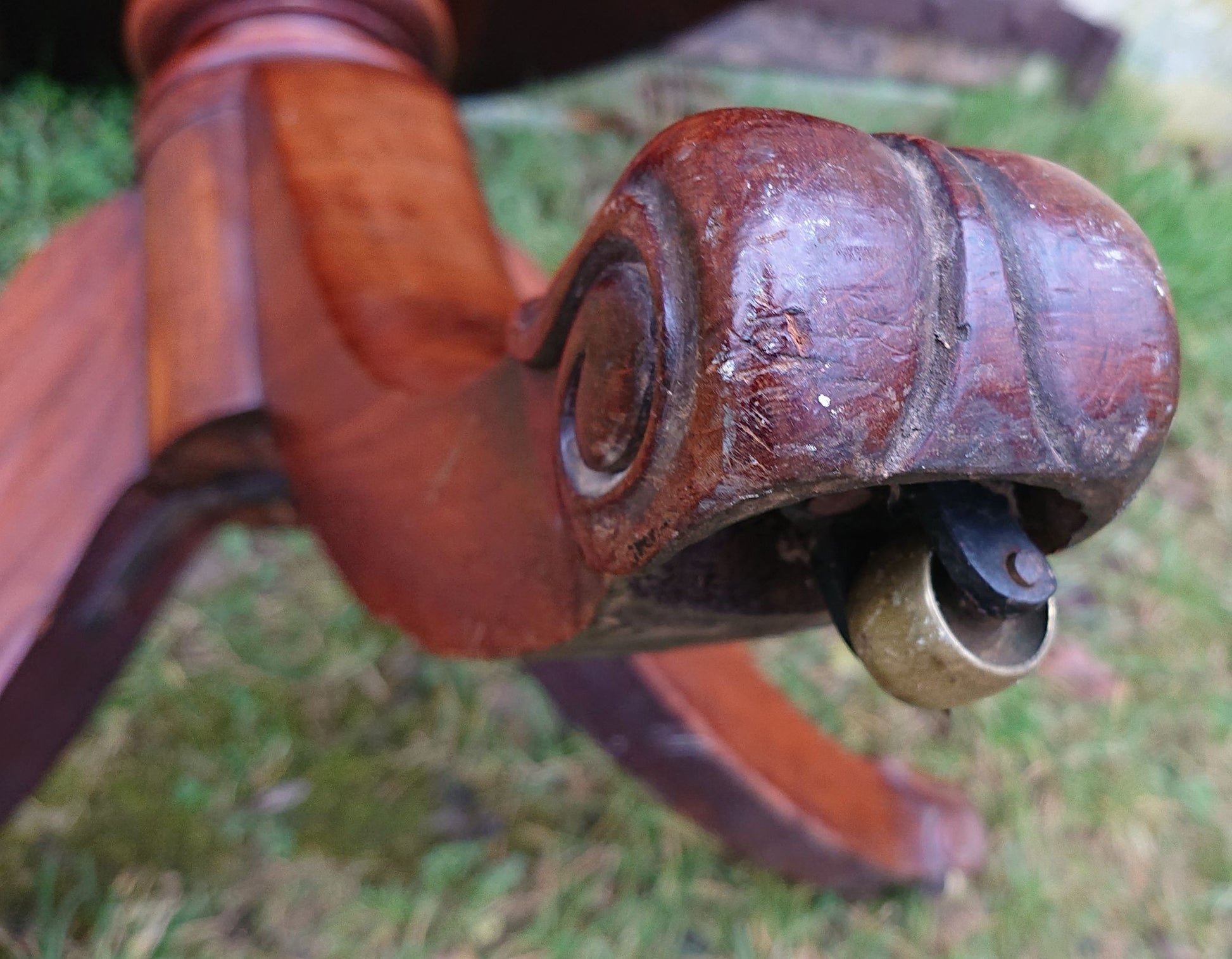 Very well made table, useful size, great colour, crisp turning, recessed casters, lovely timber, surprisingly heavy, 150 years old or maybe more, IKEA money but built to last.